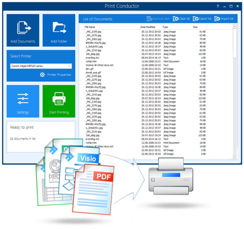 今回fCoder社が仮想プリンターの技術をさらにアップして「プリントコンダクター」を発売しました。プリントコンダクターは、複数のソフトのファイルを一括で印刷できます。一度印刷したファイルはリストとして保存し、いつでも印刷できます。