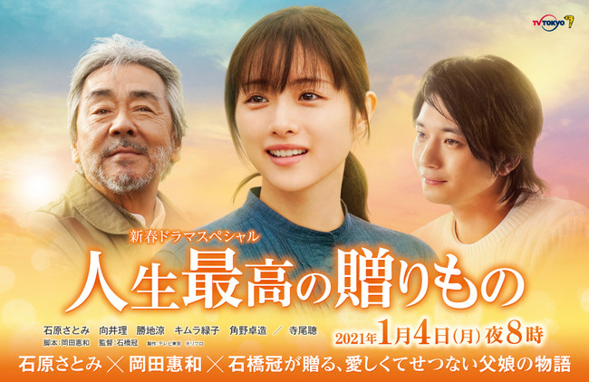 テレビ東京では、2021年1月4日(月)夜8時から、主演・石原さとみ、脚本・岡田惠和、監督・石橋冠という強力タッグによる、新春ドラマスペシャル「人生最高の贈りもの」を放送致します。本作は、余命宣告をうけた一人の女性と、彼女を取り巻く家族の絆を描いたオリジナル脚本による愛と感動のドラマです。