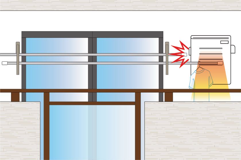 共同住宅に設置されている避難器具用ハッチは、消防庁が定める基準に沿って降下空間を確保する必要があります。しかし、入居者が生活していく中で、物干金物から飛び出る竿が降下空間の妨げになることがあります。竿のとび出しを防ぐため、住民の入居前に設置可能な竿止めを製品化しました。