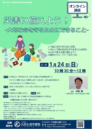 千代田区立九段生涯学習館 異世代交流事業「災害に備えよう!-大切な命を守るためにできること-【オンライン講座】」
