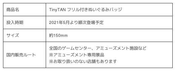 株式会社BANDAI SPIRITS(代表取締役社長:福田祐介、本社:東京都港区)は、Big Hit Entertainmentの所属アーティストBTSのキャラクター「TinyTAN」を、ハズレなしのキャラクターくじ『一番くじ TinyTAN』(1回700円 税10%込)として5月上旬よりコンビニエンスストアのファミリーマート限定で発売予定です。また、クレーンゲーム機などのアミューズメント専用景品として「Q posket」シリーズのフィギュアを8月より全国のゲームセンターへ向けて順次投入予定です。そのほかにも、アミューズメント専用景品として「Q posket」デザインの『TinyTAN 缶バッジ』・『TinyTAN スタンド付きアクリルプレート』(2月より)、『TinyTAN フリル付きぬいぐるみバッジ』・『TinyTAN マイクロファイバータオル』(5月より)が登場予定です。