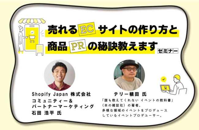 セミナー当日は、Shopify社員による「Shopifyを活用した売れるECの始め方」について講義を行う他、イベントプロデューサーであるテリー植田さんをお招きして、「コミュニティを活用したプロモーションの仕掛け方」についても講演いただきます。