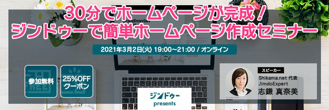 2021/3/2【無料ウェビナー|クーポン付き】30分でホームページが完成!ジンドゥーで簡単ホームページ作成セミナー ~小規模案件にぴったり