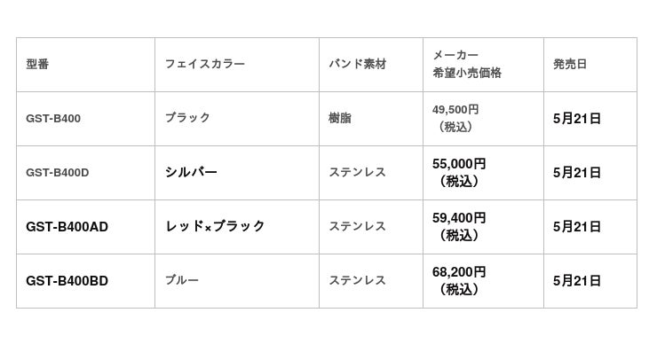 カシオ計算機は、耐衝撃ウオッチ“G-SHOCK”より、異素材の融合が特徴の“G-STEEL”シリーズの新製品として、シリーズ最薄※1の『GST-B400』を5月21日に発売します。