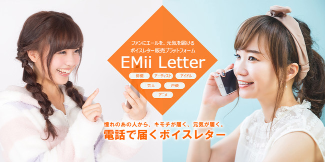EMii Letterはコロナ禍の中「笑顔を、元気を届けたい」という想いから生まれたサービスであり、俳優やアーティスト、アイドル、芸人、声優、アニメキャラクターなどに向けたボイスレター販売プラットフォームとして、世界に1つだけのボイスレターを【電話】でエンドユーザーに届けることができます。