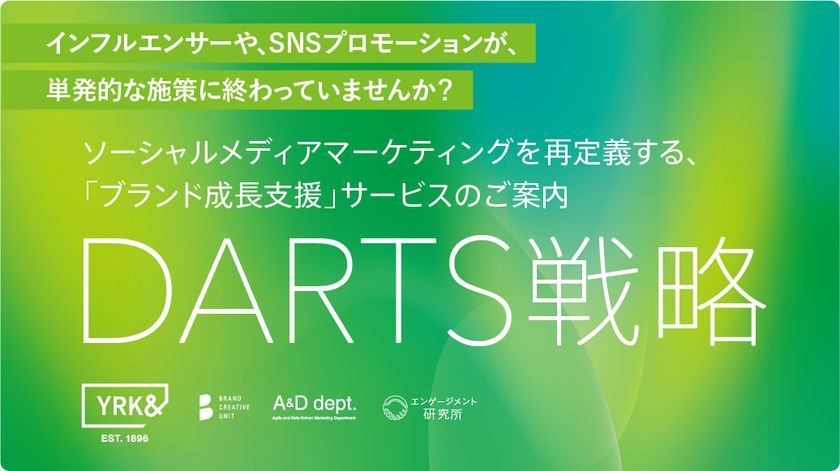 1896年の創業から125年の実績を持つブランドコンサルティングファーム、株式会社 YRK and(本社:大阪市中央区、代表取締役社長:中許 将一、 https://www.yrk.co.jp/ )は、この度、ソーシャルメディアマーケティングを再定義する、ブランド成長支援サービス「DARTS戦略」を本格稼働させます。