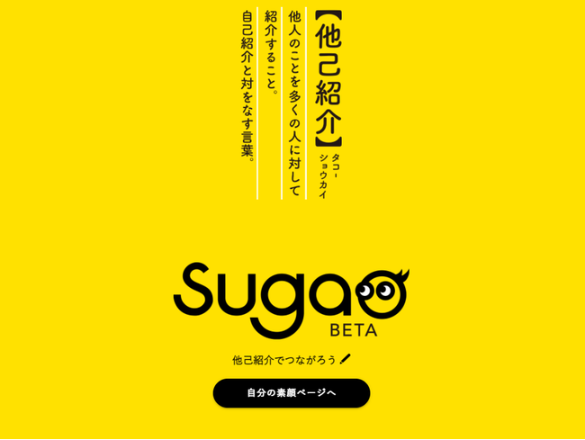 株式会社FEEMAILは、自己紹介ではなく人から自分のことを紹介してもらう他己紹介サービス「sugao.me」β版の提供を5月10日(月)より開始いたします。自己理解を深め、自分の強みを発見するツールとしての活用はもちろん、人と人との繋がりを深めることに貢献できるサービスを目指します。