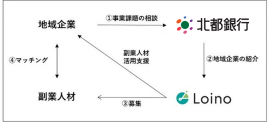 本件において北都銀行は、取引先企業の人材ニーズを見極めたうえで適切な副業人材を「Loino」を通じて紹介し、「Loino」は、副業人材と企業とのマッチングとフォローアップを行います。
