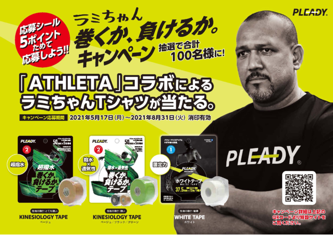 テーピングブランドPLEADY(プレディ)は、アレックス・ラミレス氏のブランドアンバサダー就任を記念して、限定コラボTシャツが当たる「ラミちゃん 巻くか、負けるか。キャンペーン」を2021年5月17日よりスタートいたします。