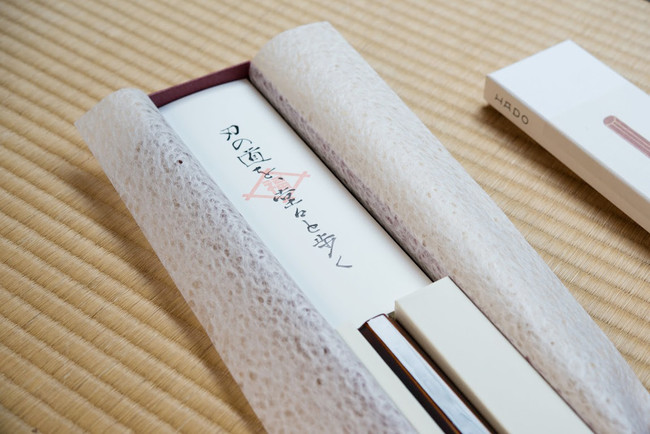 古墳時代に起原があると言われる堺の打刃物(うちはもの)。戦国時代、江戸時代と時を経て、包丁は堺の伝統産業となった。この街には脈々とモノづくりの血が流れ、いまもそのDNAは受け継がれている。その堺の血が呼び覚ました新しい動きが今回のブランドである。ブランドのコンセプトは「モノづくりの魂」。堺の街に色濃く漂うクラフトマンとしての誇りを大切に、単によく切れるだけではなく、すべての人に持つ感動を与える包丁でありたいと願っている。ブランドの名前は「刃の道」と書いて「HADO」。百年企業福井の百年先への決意であり道標でもある。