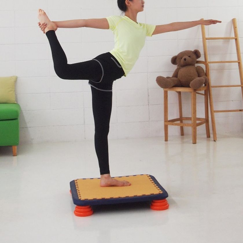 「バンバンボード」は床に接地するウレタン製のスプリングで反発力を作るだけでなく、床への振動を抑えます。また、安全性を考慮し、子どもが飛び跳ねる天板は高さ12.5cmと普通のトランポリンの約半分程度の高さで、天板の角は丸く加工されています。
