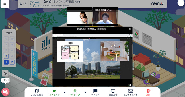 不動産賃貸・売買のオンライン仲介サービスを運営する株式会社Kant(カント、所在地:東京都板橋区 ※以下 当社)は、オンライン会議ツールのRemoを活用したインターネット上の「バーチャル店舗」を毎週水曜日14時から16時まで一般開放し、予約なしでのお部屋探し相談を受け付けることを決定しました。事前予約は不要で、お部屋探しをご検討中の方はどなたでもご参加いただけます。この店舗では、オンライン相談会などの各種イベントも不定期に実施していく予定です。