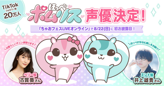 TikTokフォロワー数20万人のキャラクター「ほっぺポムリス」の声優が古賀葵さん、井上雄貴さんに決定!