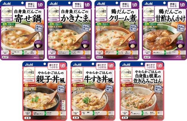 アサヒグループ食品株式会社(本社 東京、社長 川原浩)は、“アサヒのおいしい介護食”「バランス献立」の“容易にかめる”区分からおかず4品(『バランス献立 白身魚だんごの寄せ鍋』『バランス献立 白身魚だんごのかきたま』『バランス献立 鶏だんごのクリーム煮』『バランス献立 鶏だんごの甘酢あんかけ』)、“歯ぐきでつぶせる”区分から主食3品(『バランス献立 やわらかごはんの親子丼風』『バランス献立 やわらかごはんの牛すき丼風』『バランス献立 やわらかごはんの白身魚と根菜の炊き込みごはん』)の計7品を9月6日より、全国で新発売します。