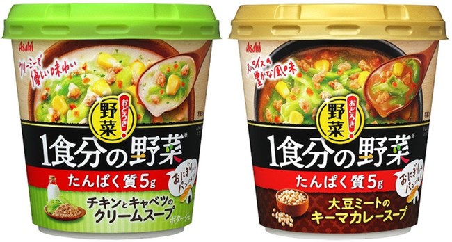 アサヒグループ食品株式会社(本社 東京、社長 川原浩)は、「野菜を食べるスープ」がコンセプトの「おどろき野菜」ブランドから、『おどろき野菜 1食分の野菜 チキンとキャベツのクリームスープ』『おどろき野菜 1食分の野菜 大豆ミートのキーマカレースープ』を9月6日より全国で新発売します。