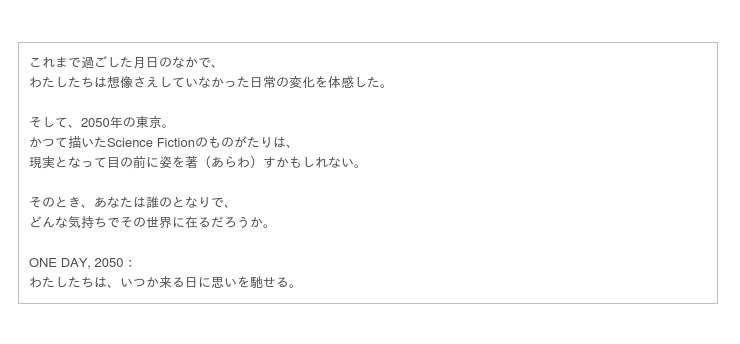 特設サイト:https://www.sony.com/ja/SonyInfo/design/oneday2050/