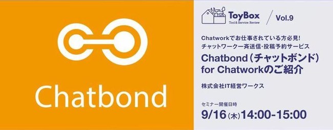 2021/9/16 ToyBox Vol.9【無料】Chatworkでお仕事されている方必見! 一斉送信・投稿予約サービスChatbond(チャットボンド) for Chatwork のご紹介