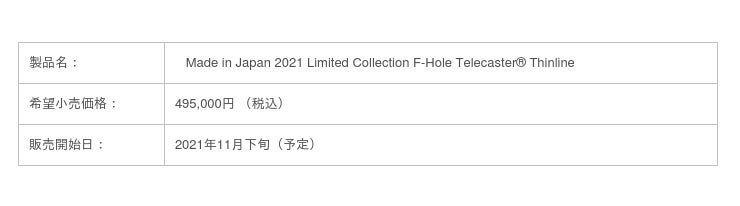 サウンドホールにフェンダーのスパゲティロゴを採用した遊び心くすぐるギターが登場!『F-HOLE TELECASTER(R) THINLINE』2021年9月17日(金)より販売開始
