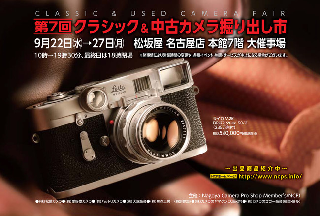 2021年9月22日(水) ~ 9月27日(月)、松坂屋名古屋店(本館)7階大催事場にて「第7回 クラシック&カメラ掘り出し市」が開催されます。