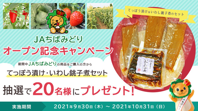 新ショップのオープンを記念して、本日から10月31日までの期間中、当ショップで購入いただいた方の中から抽選で20名様に「てっぽう漬け・いわし銚子煮セット」をプレゼントするキャンペーンを実施します。この機会にぜひご利用ください。