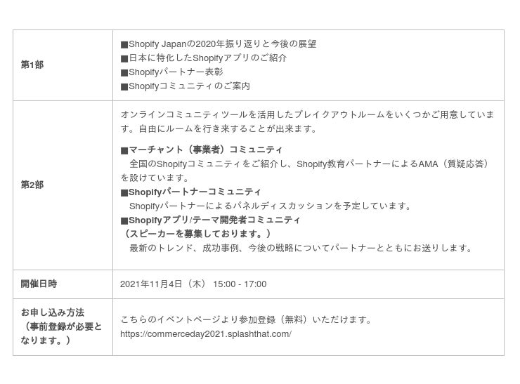 事業者・パートナーコミュニティ向けの1日限定イベント「Shopify COMMERCE DAY 2021」11月開催決定!