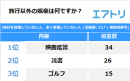 旅行を我慢していない人にその他の娯楽を聞いたところ、1 位は「映画鑑賞」(34 票)、2 位は「読書」(26 票)、3 位は「ゴルフ」(15 票)となりました。