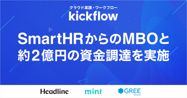 株式会社kickflow(※1)は、株式会社SmartHR(※2)からのMBOと、シードラウンドとしてHeadline Asia、mint、GREE Venturesから約2億円の第三者割当増資を実施したことを発表いたします。あわせて本日2021年10月21日にクラウド稟議・ワークフロー「kickflow」を正式リリースしたことをお知らせいたします。