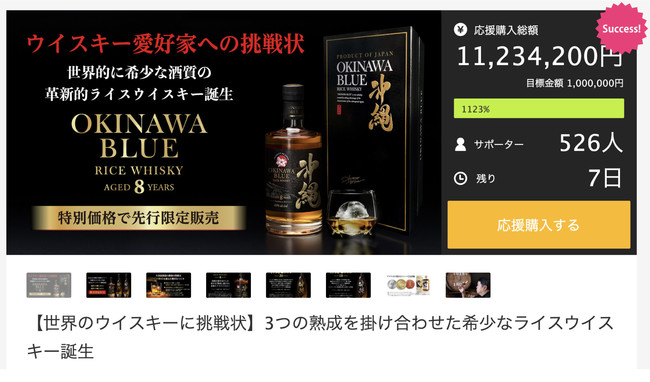 沖縄でしか造れない新たなウイスキー『沖縄 BLUE 8年』がクラウドファンディングMakuakeで目標達成率1,123%を突破!先行限定価格で手に入るのは残りあとわずか。