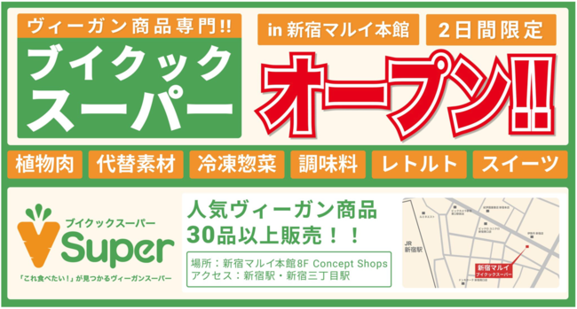 新宿マルイ 本館concept shops(コンセプトショップス)にブイクック単独で初のポップアップショップ「ブイクックスーパー」が期間限定オープン!ヴィーガン商品30種類以上が大集合!