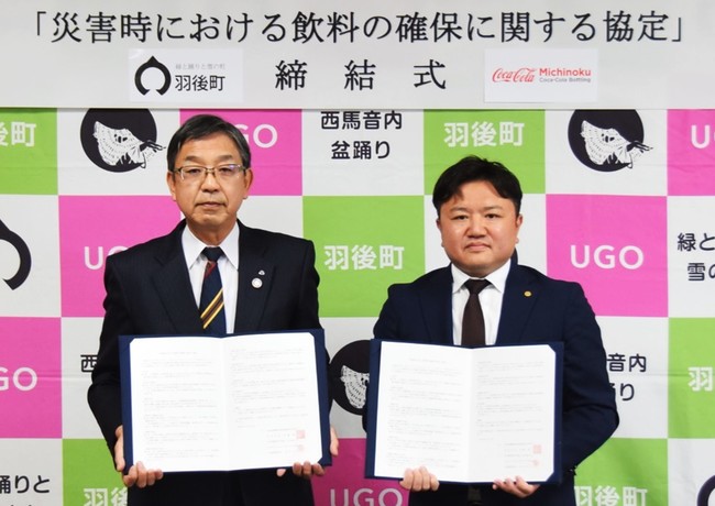 みちのくコカ・コーラボトリング、秋田県 羽後町と「災害時における飲料の確保に関する協定」を締結