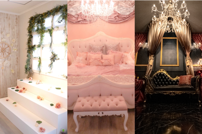 ルーシー2号店では、内装・小物といった細部にまで拘った3種類のシチュエーション(プリンセス・ゴシック・ホワイトガーデン)から、自由に撮影することができます。