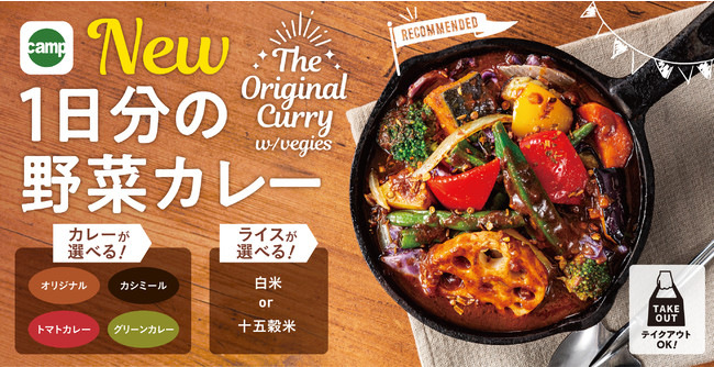 これまでcampファンに親しみ愛されてきた「1日分の野菜カレー」のリニューアルを中心に「もっと野菜を、もっと多彩に」をテーマに新商品も加えました。日常の食生活で不足しがちな野菜を美味しく召し上がっていただけるカレーを目指しスパイスのブレンドから見直しました。