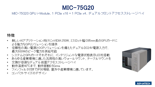 台湾 Advantech Co., Ltd. (TAIDEX:2395)は、 1983年の創業以来eプラットフォームのリーディング・プロバイダとして、 産業用コンピューティングやオートメーション市場におけるハイパフォーマンスな製品の開発・製造および販売に携わっており、 現在では世界26カ国96都市に拠点を構えるグローバル企業です。 産業用コンピュータや産業用PC、 リモートI/Oモジュールや産業用マザーボードの販売に加え、 お客様のニーズにきめ細かくお応えする産業用コンピュータのBTOサービスや、 お客様の要求仕様に合わせて製品の設計から生産までを請け負うDMSビジネスも行なっています。 また、 コーポレートビジョン「インテリジェント・プラネットの実現」を具現化するスマートシティ&IoTソリューション・ビジネスの開拓に注力し、 積極的な製品およびソリューション開発ともに、 さまざまなエコパートナー企業とのパートナーシップの強化を図っています。 エコパートナー企業との緊密な協力関係、 および自らの研究開発投資によって、 インテリジェント・システムを様々な産業に普及させ、 あらゆる労働環境と生活環境をより豊かでスマートなものにしていくことが、 Advantechの使命です。