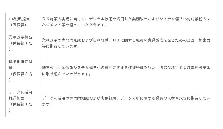 令和4年度から勤務する任期付職員として、民間企業等で培った企画調整能力、コミュニケーション能力、プロジェクト遂行能力等をいかんなく発揮し、区のDXを力強く推進していただける人材を求めています。