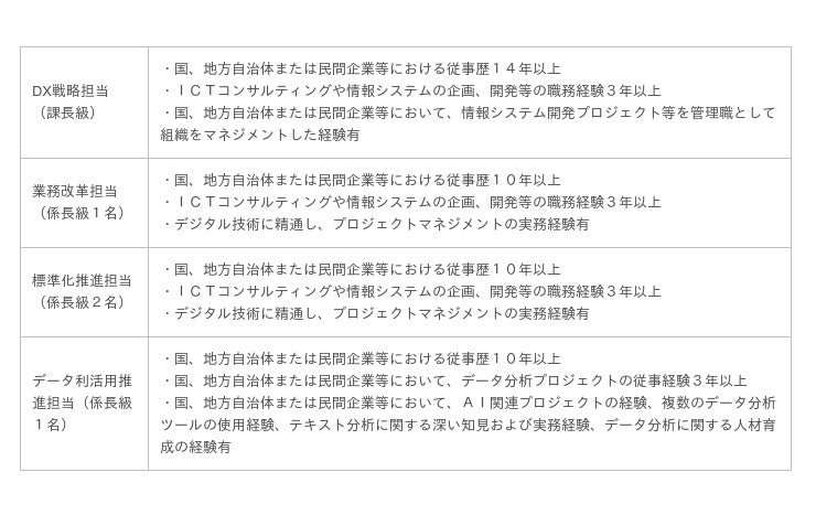 このたび、これらの取り組みを円滑かつ適切に進めていくために、デジタル技術や各種データの収集、分析、活用、さらにプロジェクトマネジメントなどに関する専門的知見を有し、それぞれの領域で卓越した実績を持つ外部人材を、公募により5名という規模で求めることとしました。