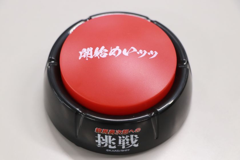 「範馬勇次郎への挑戦 筋トレカウンターボタン」は、自宅で懸垂や腕立てなどの筋力トレーニングを実施する際のサポートアイテムです。本製品には、同マンガ内で“地上最強の生物”と謳われる範馬勇次郎(CV.大塚 明夫)の名セリフ&録りおろしボイスが計20ワード収録されており、顎や手で押すたびに力強い声掛けでワークアウトを応援してくれます。また、オリジナルタオルには範馬勇次郎の大胆な開脚がプリントされており、飾っても良し、汗を拭うも良しのファン必携アイテムです。