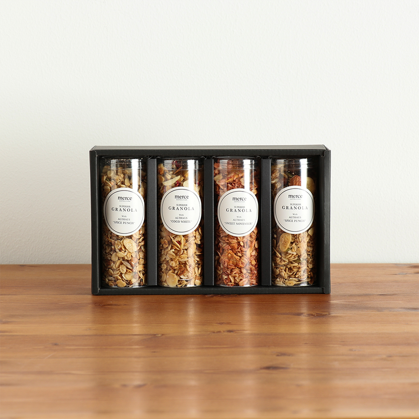 アルトハウスの茶葉をブレンドしたメルチェオリジナル「ティーグラノーラ」から特別な贈り物にぴったりのギフトボックスが12月1日に登場!