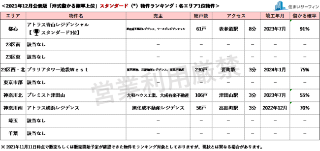 12月公表分は、2021年11月11日時点で販売もしくは販売予定が確認できた物件を対象としています。