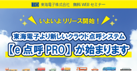 【いよいよリリース開始!】『東海電子の新しいクラウド点呼システム【e点呼PRO】始まりますセミナー』12月17日(金)、23日(木) 開催のお知らせ