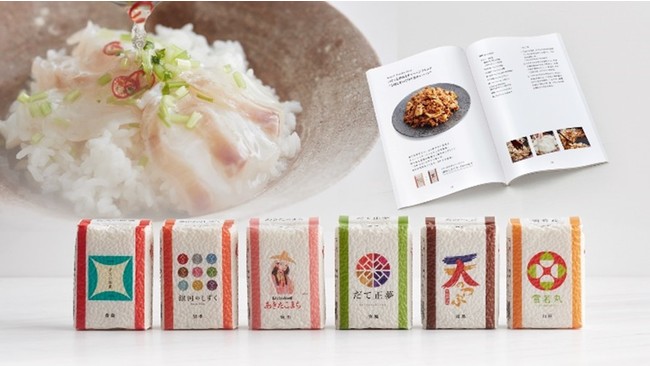 個性豊かな6種類のお米と、料理に合わせたお米のブレンド方法を紹介したレシピブック付き