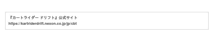 ・公式サイト :https://kartriderdrift.nexon.co.jp/jp/cbt