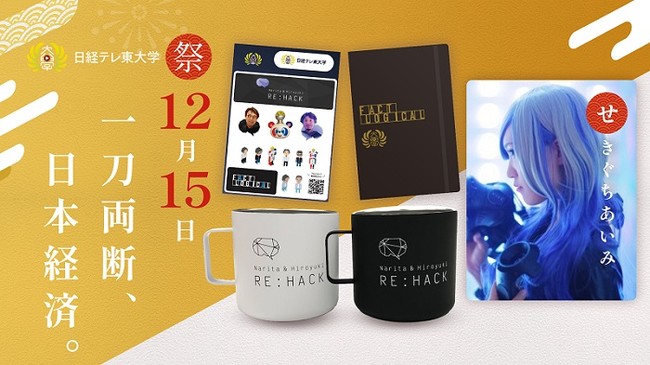 そのほか抽選で1000名に当たるスターバックスドリンクチケットや、ひろゆき氏と成田悠輔氏による人気番組「Re:Hack」のロゴをあしらったステンレスマグやチャンネルアートワークを集めたステッカーシートなど日経テレ東大学オリジナルグッズセットを抽選で10名様にプレゼント。
