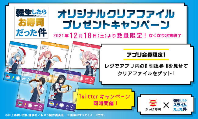 【大人気アニメ】転生したらスライムだった件×かっぱ寿司 スペシャルコラボ 転生したらお寿司だった件!アプリ会員限定!オリジナルクリアファイルプレゼントキャンペーン開催