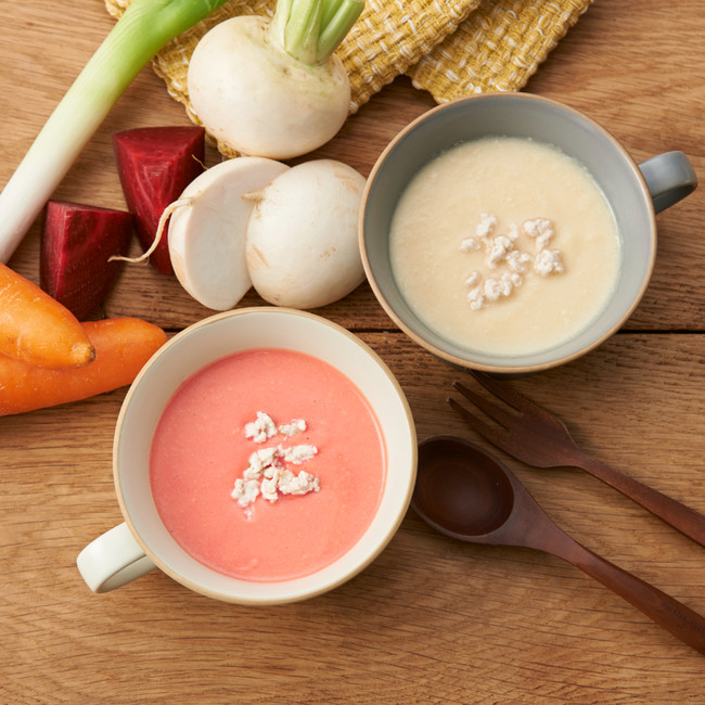旬の野菜や果物の素材の味わいを引き立て、飲みやすさと栄養価、満足感を両立した冬に嬉しいポタージュスープ。野菜不足や栄養バランスを気にする方も手軽に取り入れられるよう開発しました。
