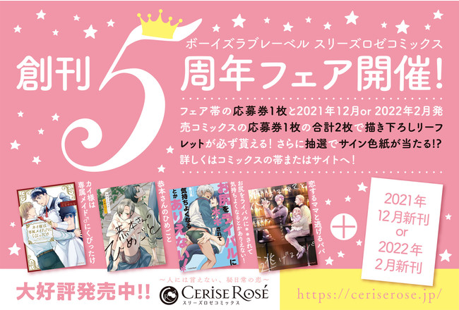 ボーイズラブレーベル「スリーズロゼコミックス」創刊5周年フェア開催!!