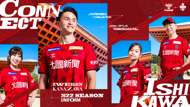 2022シーズンのツエーゲン金沢のユニフォームは、クラブ理念“挑戦を、この街の伝統に。”の5つの価値のうち、「つなぐ」にフォーカス。「ツエーゲン金沢というサッカークラブが活動することで、石川県の様々な絆をつなげる」、「地域とのつながりがツエーゲン金沢の可能性をさらに広げる」という想いを込めたものに。