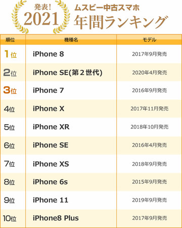 ムスビー/2021年 中古スマホ 年間ランキング発表