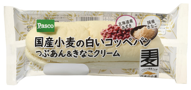 国産小麦シリーズの新商品 「国産小麦の白いコッペパン つぶあん&きなこクリーム」