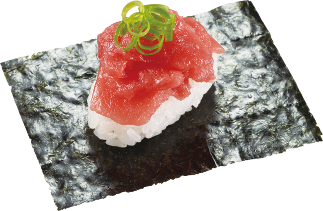 『本鮪とろたたき 有明のり包み』一貫110円(税込)
