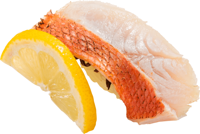 『国産 金目鯛炙り 塩昆布のせ』一貫330円(税込)